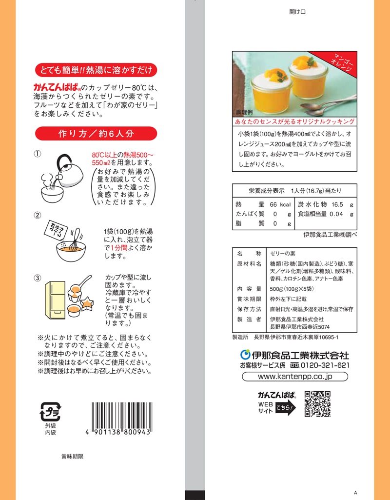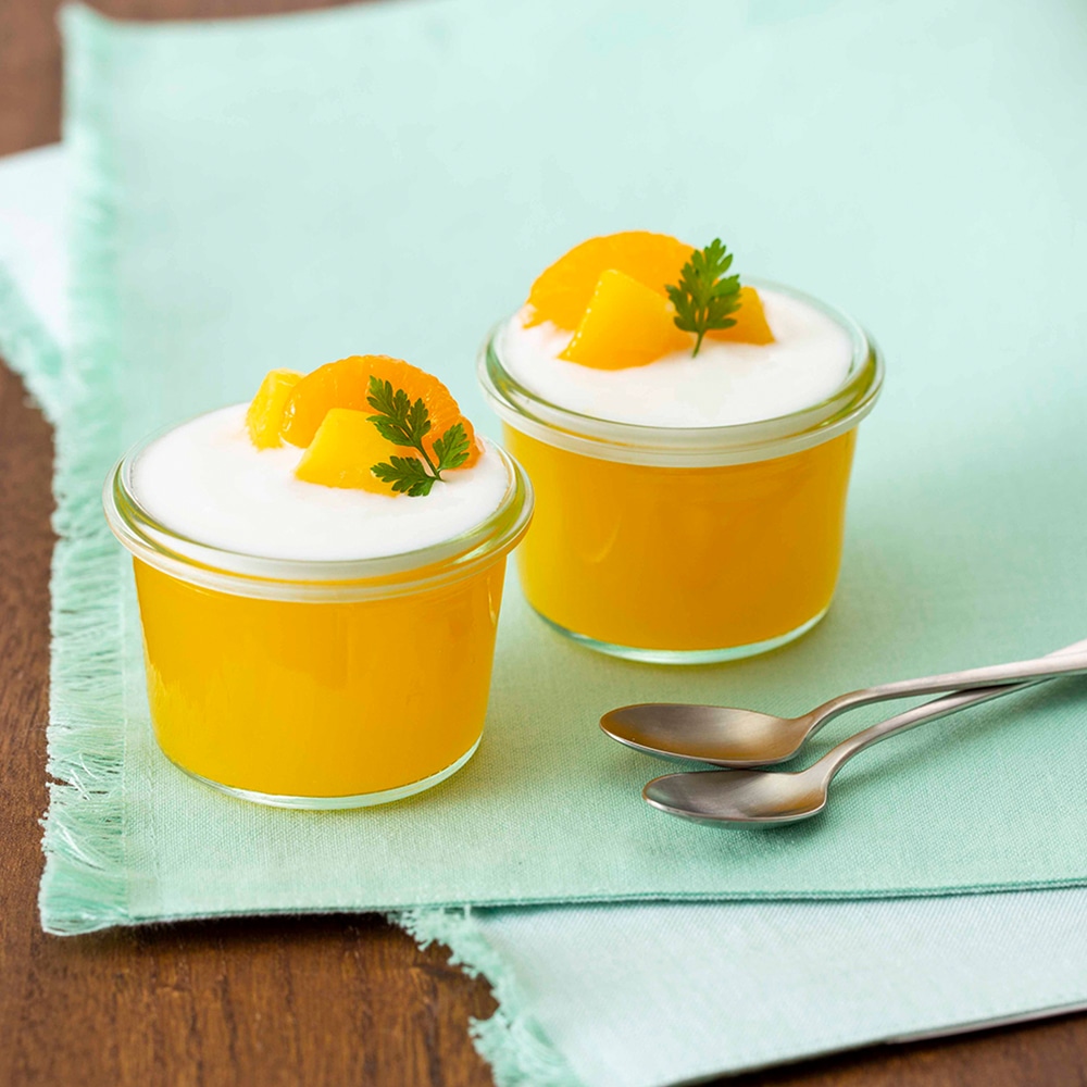 カップゼリー80℃は、海藻からつくられたゼリーの素です。フルーツなどを加えて「わが家のゼリー」をお楽しみください。