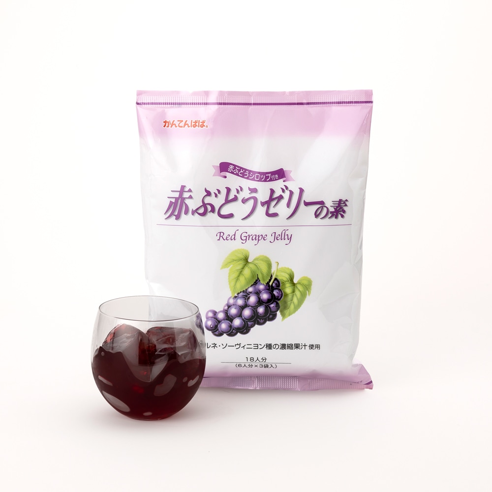 赤ワインの原料として有名なカベルネ・ソーヴィニヨン種の濃縮果汁を加えてつくる、本格ゼリーの素。 甘酸っぱいぶどうのさわやかさと香りが特長のゼリーです。