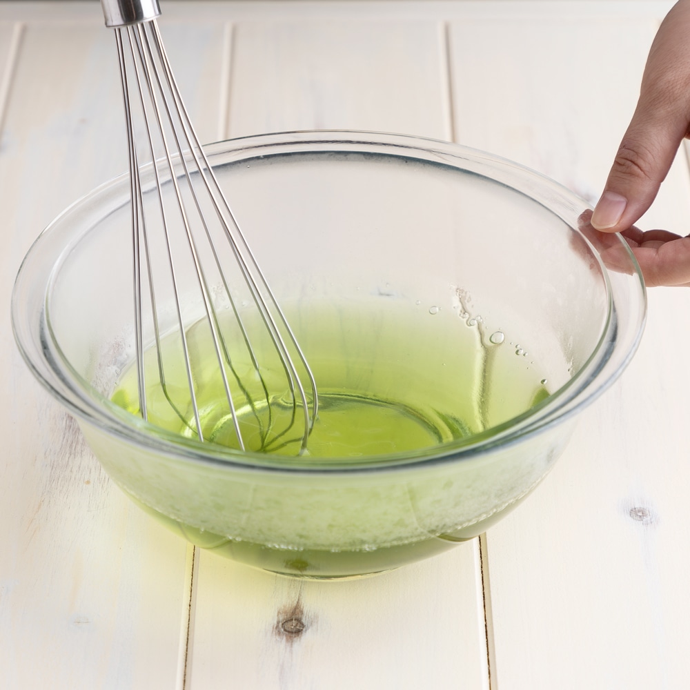 ①90℃以上の熱湯400mlの中に、「4色かんてん」中袋1袋(50g)を入れ、泡立て器で約1分間かき混ぜよく溶かします。②容器に流し込み、冷蔵庫で冷やし固めます。