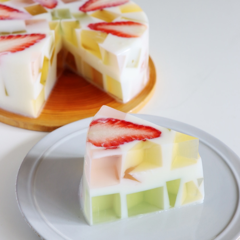 イチゴ味・メロン味・パイン味・ホワイトの4つの味で、彩りのある寒天ゼリーがつくれます。甘さ控えめなのでフルーツとの相性抜群!