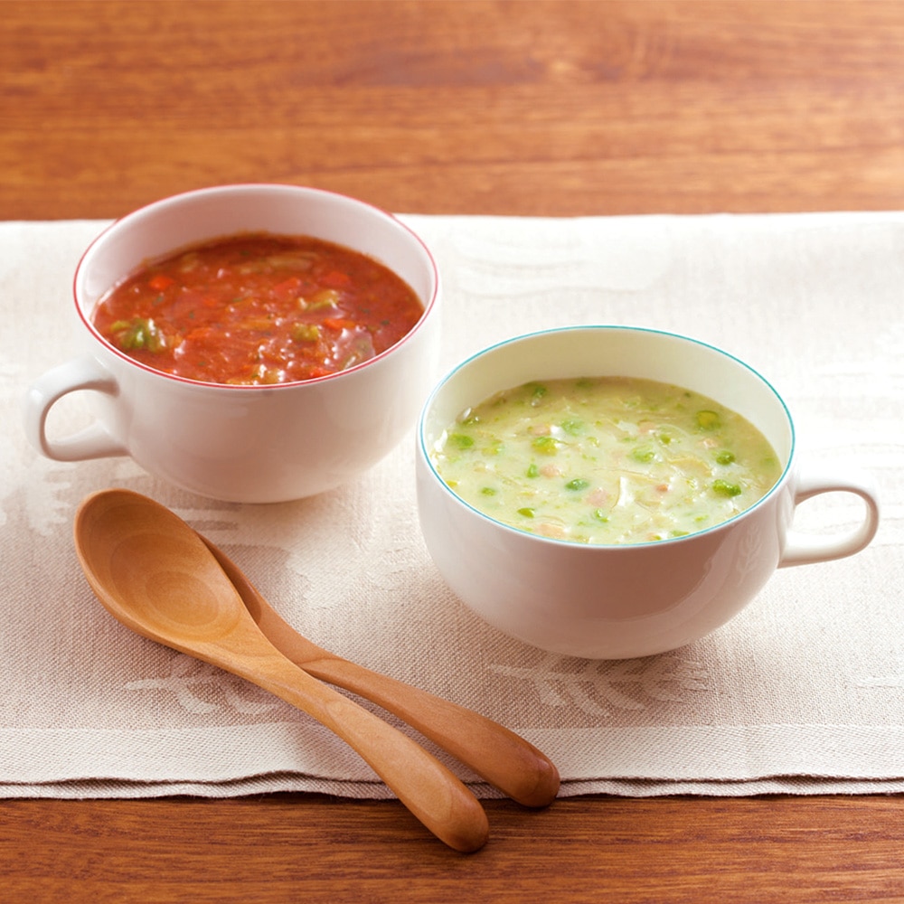 ※粉末スープは溶けにくく、だまになりやすいので、よくかき混ぜてください。