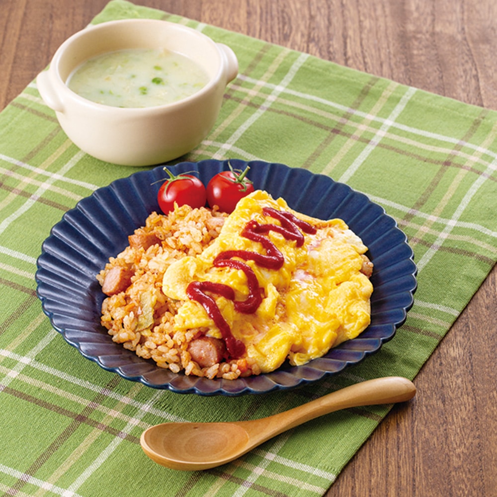 コンソメなどの調味料と一緒に炊飯器で炊いて、卵をのせればオムライスに早変わり!