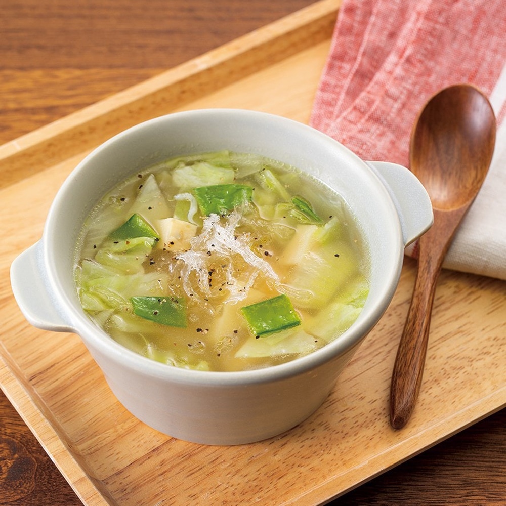 スープやみそ汁に入れる以外にも、水で戻してサラダや和え物にもお使いいただけます。