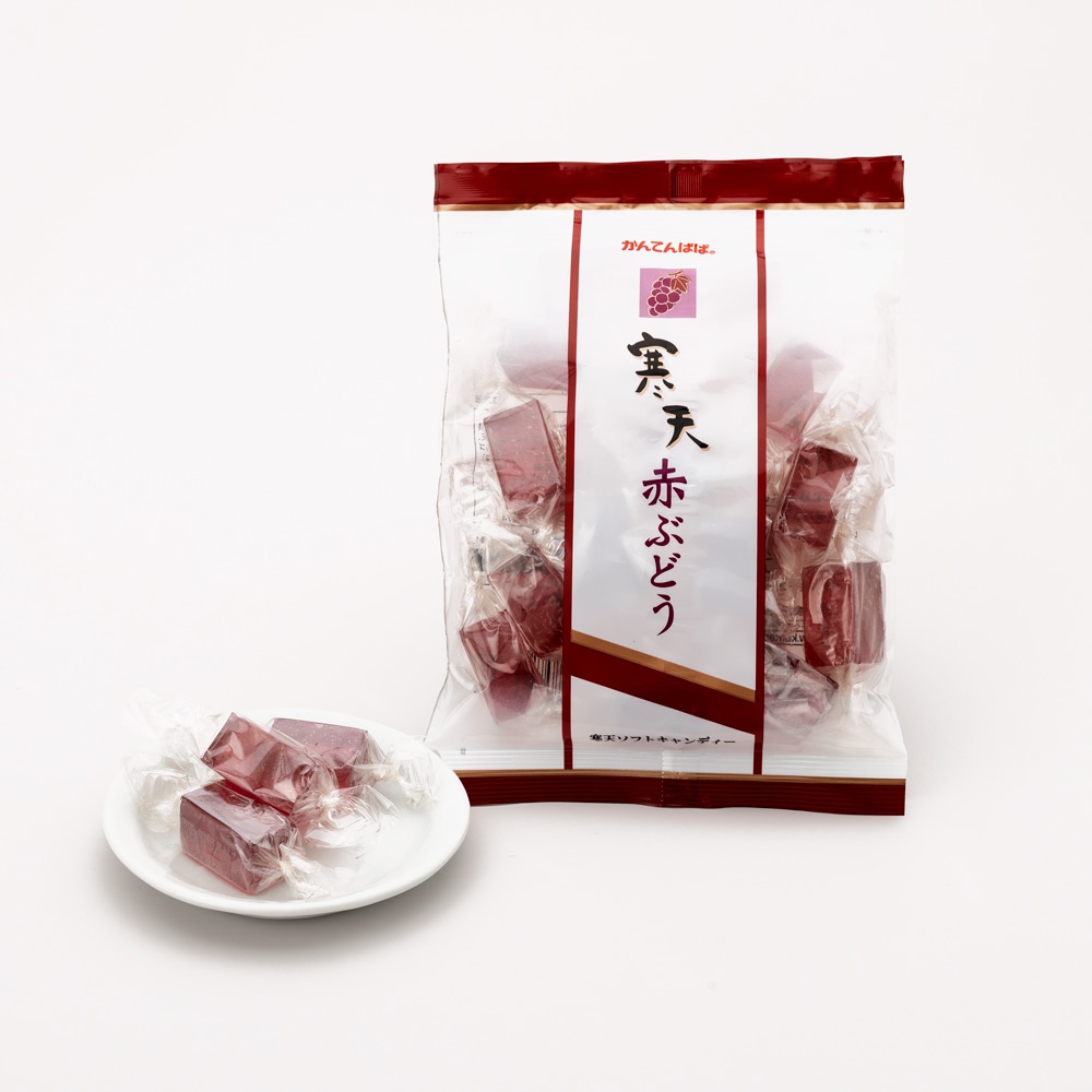 「寒天赤ぶどう」はカベルネ・ソーヴィニヨンのぶどう果汁を使った高級感のある1粒です! おやつにぴったり♪