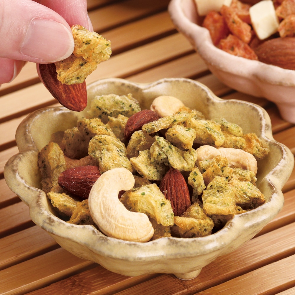 ※「さくさく寒天 あおさ醤油」に含まれるあおさは、えび、かにが混ざる漁法で採取しています。