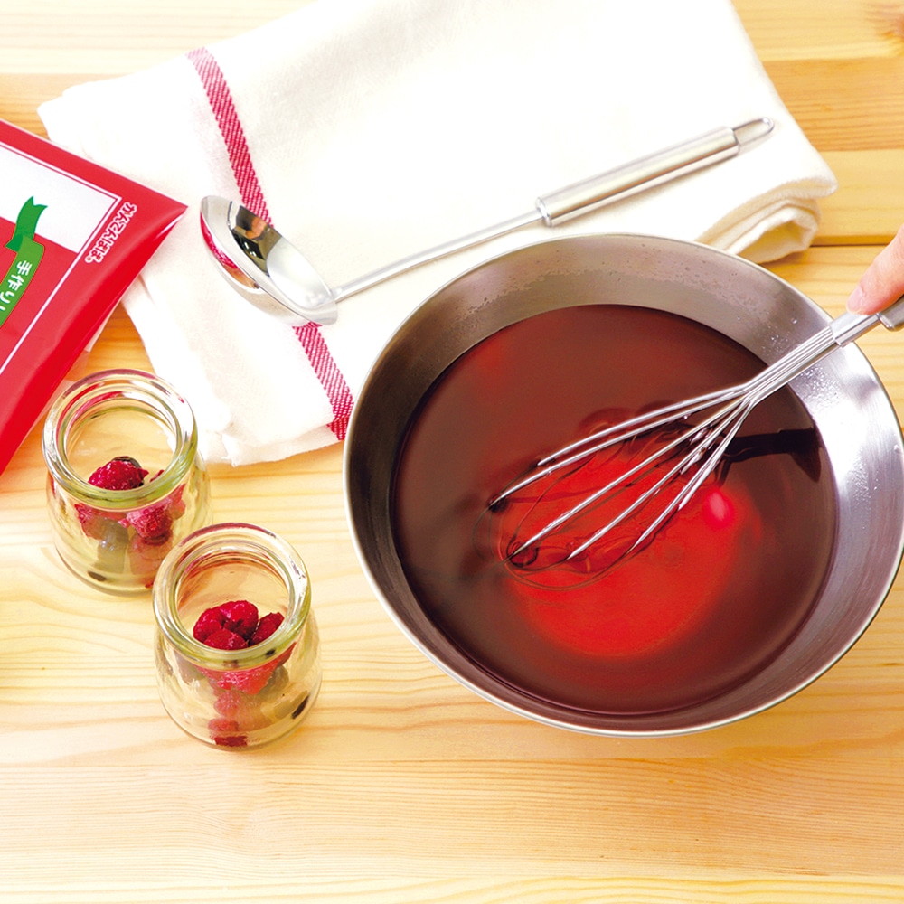 カップゼリー80℃は、海藻からつくられたゼリーの素です。フルーツなどを加えて「わが家のゼリー」をお楽しみください。