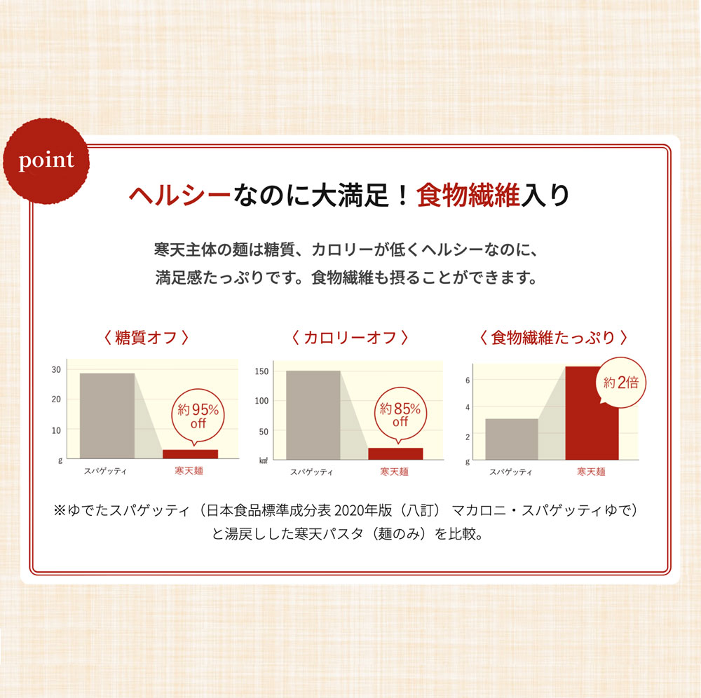 通常のスパゲッティよりも糖質約95%、カロリー約85%オフ。