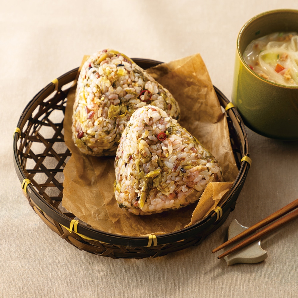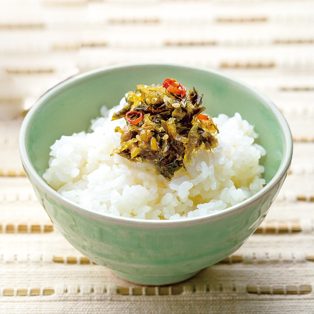 ピリ辛でシャキシャキ食感の野沢菜と旨みがしみ込んだ糸寒天が相性抜群!