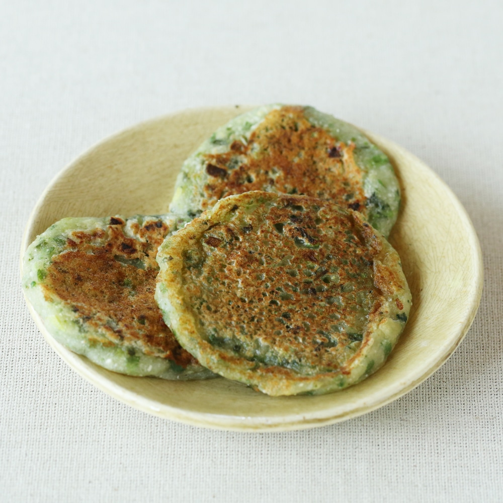 風味のよい大根粉末を加えたもちもちの生地に、信州産の野沢菜のシャキシャキした食感が楽しい一品です。チーズをトッピングしたり、海苔を巻いて磯部焼き風にアレンジするのもおすすめ。