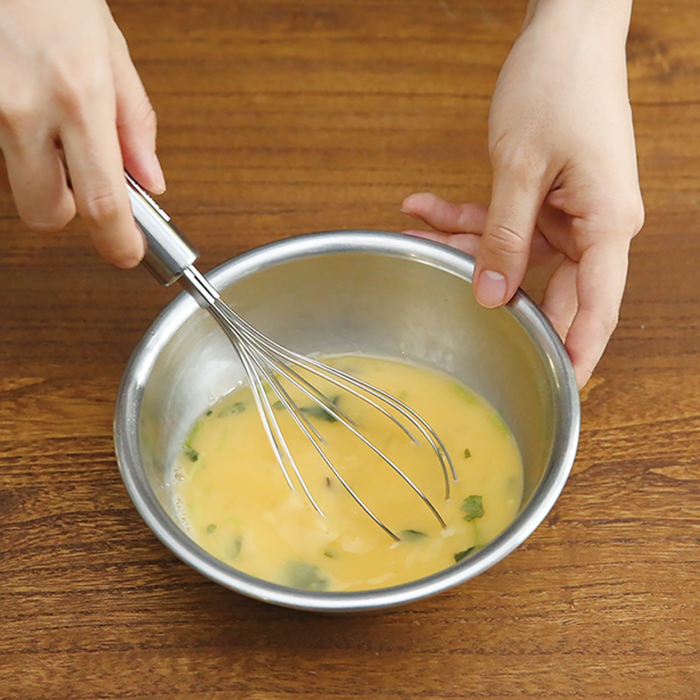 ①ボウルに水と本品を入れ、かき混ぜます。②たまごを割り入れ、泡立て器で約1分間、白身を切るようによく混ぜ合わせます。